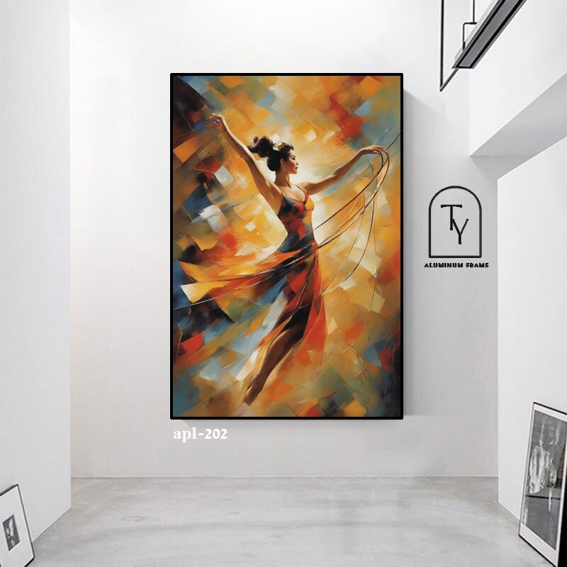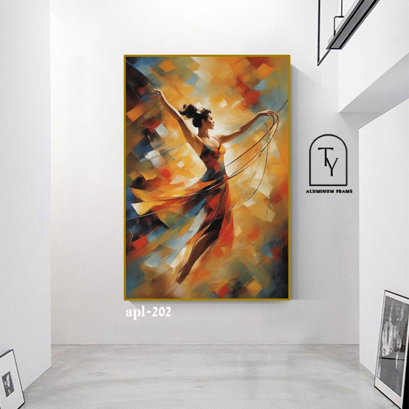 תמונה  איכותית 10 מ”מ המוגשת עם מסגרת אלומיניום יוקרתית לבחירה. הדפס אומנותי נועז ומרשים המשלב שלל צבעים חיים עם עוצמה שקטה. מושלם למרכז קיר בסלון או לחלל המעוצב בסגנון מודרני. ההדפס המיוחד של הרקדנית בשלל הצבעים מעניק יוקרה ואומנות מדויקת והמסגרת משלימה את העיצוב עם גימור יוקרתי.